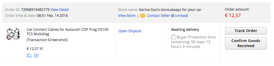 Írtam neki, és kértem, hogy törölje a rendelésemet. Azt válaszolta, hogy open dispute és válasszam a purchase protection-t. Az a gond, hogy nem tudom kiválasztani az open dispute-ot, mert azt írja, hogy csak 10 nappal az árú feladása után tudom megnyitni. Az áru meg még nem került feladásra.