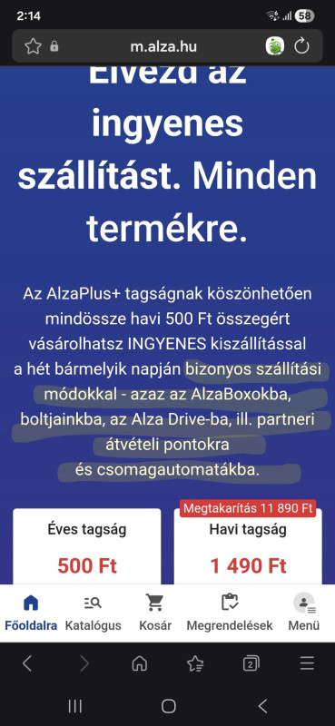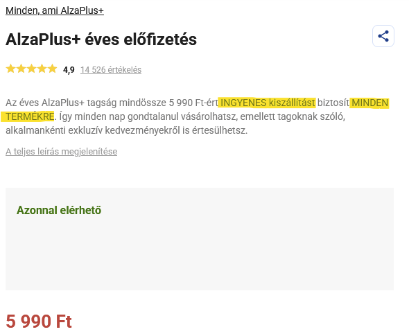Jól ráb@asztam ezzel az AlzaPlus+ "ingyenes szállítás mindenre" szöveggel.