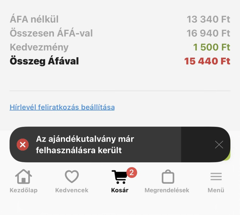 El is mentettem, be is írtam a kívánt termékek fizetéséhez.Erre az az üzenet jön föl, hogy a kupont már felhasználták.