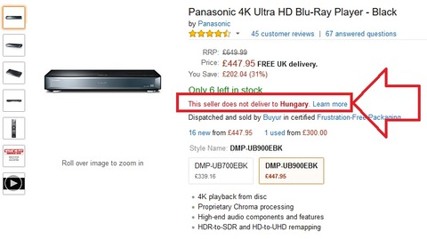 "a Magyarországra szállítandó termékekre (betartva a vonatkozó jogszabályokat) a magyar áfát számolja az Amazon. Ez azt is jelenti, hogy ahhoz, hogy a termékek végső, magyarországi árát lássuk, be kell jelentkeznünk, és be kell állítanunk magyarországi címünket a német aloldalon."