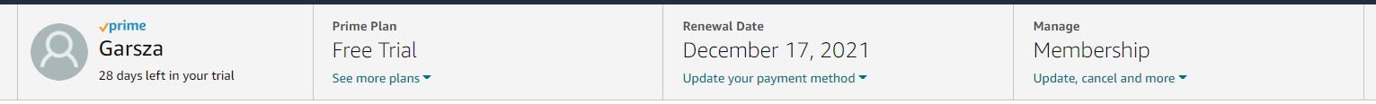 Helló! Amazon prime trial előfizetésem van jelenleg.