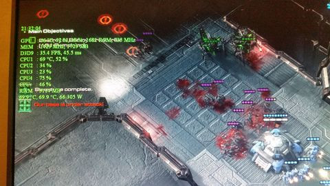 Kezdésnek manual belősz egy 4.9-et és szintén kézzel adsz neki valami 1.485 - 1.5V körüli feszt, tolsz neki egy R15 multit és ha túléli kékhalál nélkül akkor az SC2-öt és egyéb 1-2szál only játékokat a következő ~30ezer évben zötty nélkül fogja vinni.