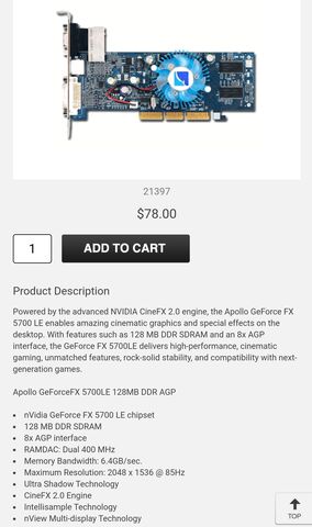 A slim gépemben mindig megy az alkatrészek cserélgetése, valahogy sosem vagyok maradéktalanul elégedett. Mivel az alaplap és a proci 2003-as, legutóbb egy szintén 2003-as 9600SE-t tettem bele, de kicsit keveslem az erejét. Az ATI FireGL 9600 T2-64S lenne talán a legjobb választás, ugyanakkor a 64 MB VRAM kissé kevés. A GeForce 6200 AGP-s változata sajnos 2005 elején jött csak ki, ezért nem érzem jó végső megoldásnak, különösen pedig, hogy nekem low profile darab kell ugye, ami kizárólag 64 biten van. Bonyolítottam kissé azzal is a helyzetet, hogy beszereztem egy gyönyörű, 2004-es SB Audigy SE-t is (ugye ez is low profile), amit ha a gépházban szeretnék tartani, máris bukik a kétezerhármasság. Perpill jó kompromisszumnak tűnik egy lp-s FX 5700SE, de csak akkor, ha az 128 bites. Az még oké lenne, ha 2003-2004-es konfigról beszélnék eztán. A GF 6200-assal a 2003-2005-ös gép már nem jön be sajnos.