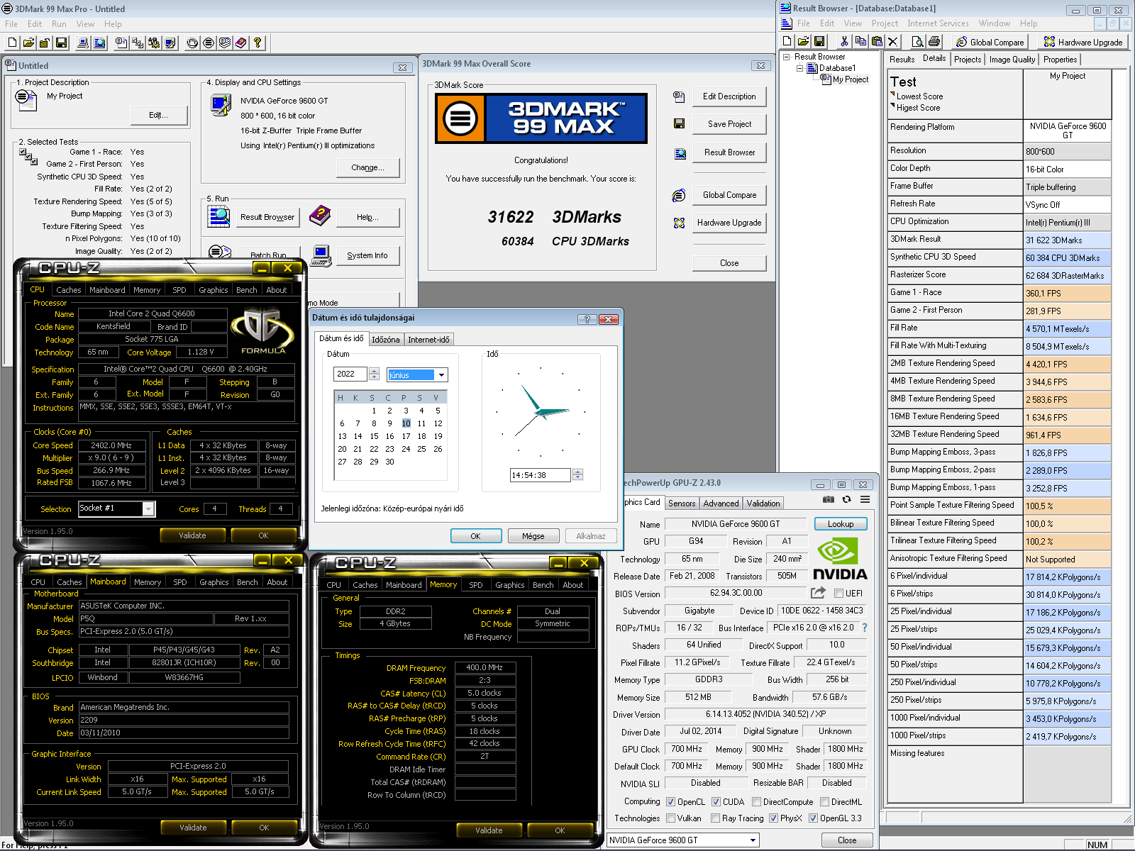 Feltéve ha a ramok is partnerek, vagy visszaoszthatóak, G41-ben nem tuningoltam még soha semmit.Q6600 G0 Asus P5Q-ban, 3DM99MAX alapon, 9600GT-vel: