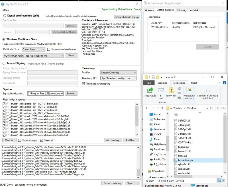 Érdekes hogy nem írja aláírtnak pedig az, nyilván nem ellenőrizhető tesztaláírása van de így működik az a lényeg. Illetve a v1 és v2 driver igen sokban hasonlít, szerintem a v1 driver volt az alapja a v2 drivernek is. Megpróbálom felvenni a kapcsolatot a készítővel forráskód miatt..már ha meg van neki a 20 év után.