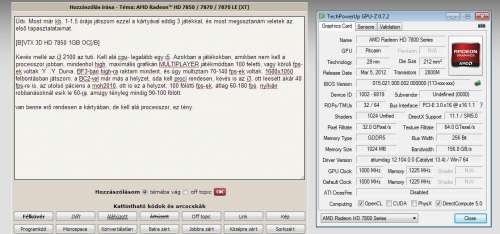 Üdv. Most már kb. 1-1,5 órája játszom ezzel a kártyával eddig 3 játékkal, és most megosztanám veletek az első tapasztalataimat.VTX 3D HD 7850 1GB OC