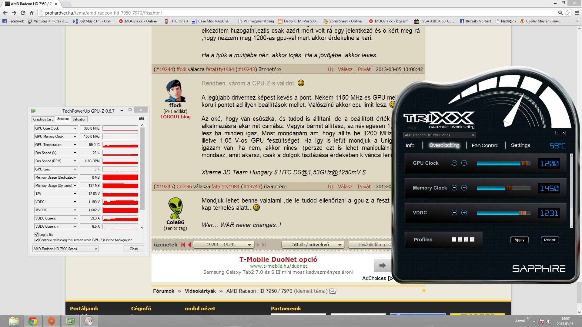 procirol nemsoká küldök neked cpuz-s képet.bios-t egy sapphire ghz-est töltöttem fel rá(ha jol emlákszem egy vapor-os volt de nembiztos.)feszt tudom állitani mert alapon 1050-et kap és trixxel 1300mv-ig tudom piszkálni.ez az elsö 7970em amit elkezdtem huzogatni,eztis csak azért mert volt rá egy jelentkezö és ö kért meg rá ,hogy nézzem meg 1200-as gpu-val mert akkor érdekelné a kari. -