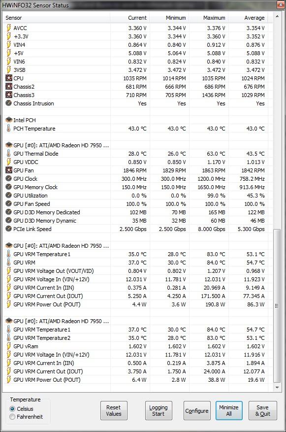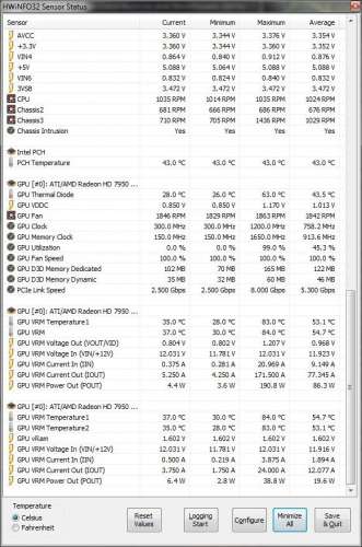 TriXX-ben adtam neki egy agresszívabb benti profilt, mert gyári auto szabályzással 74 fokos volt a hidegebb kártya, és 84 fokos a melegebb, VRM hőfokok nagyon rendben vannak, 80 fok alatt. Ezek max eredmények 25 fokos szobában több óra Tomb Raider alatt.Most agresszívabb de nem túl drasztikus venti profillal fogom tesztelni.