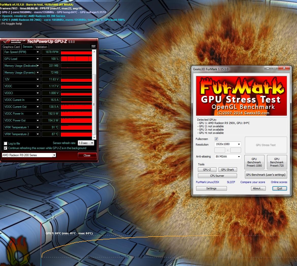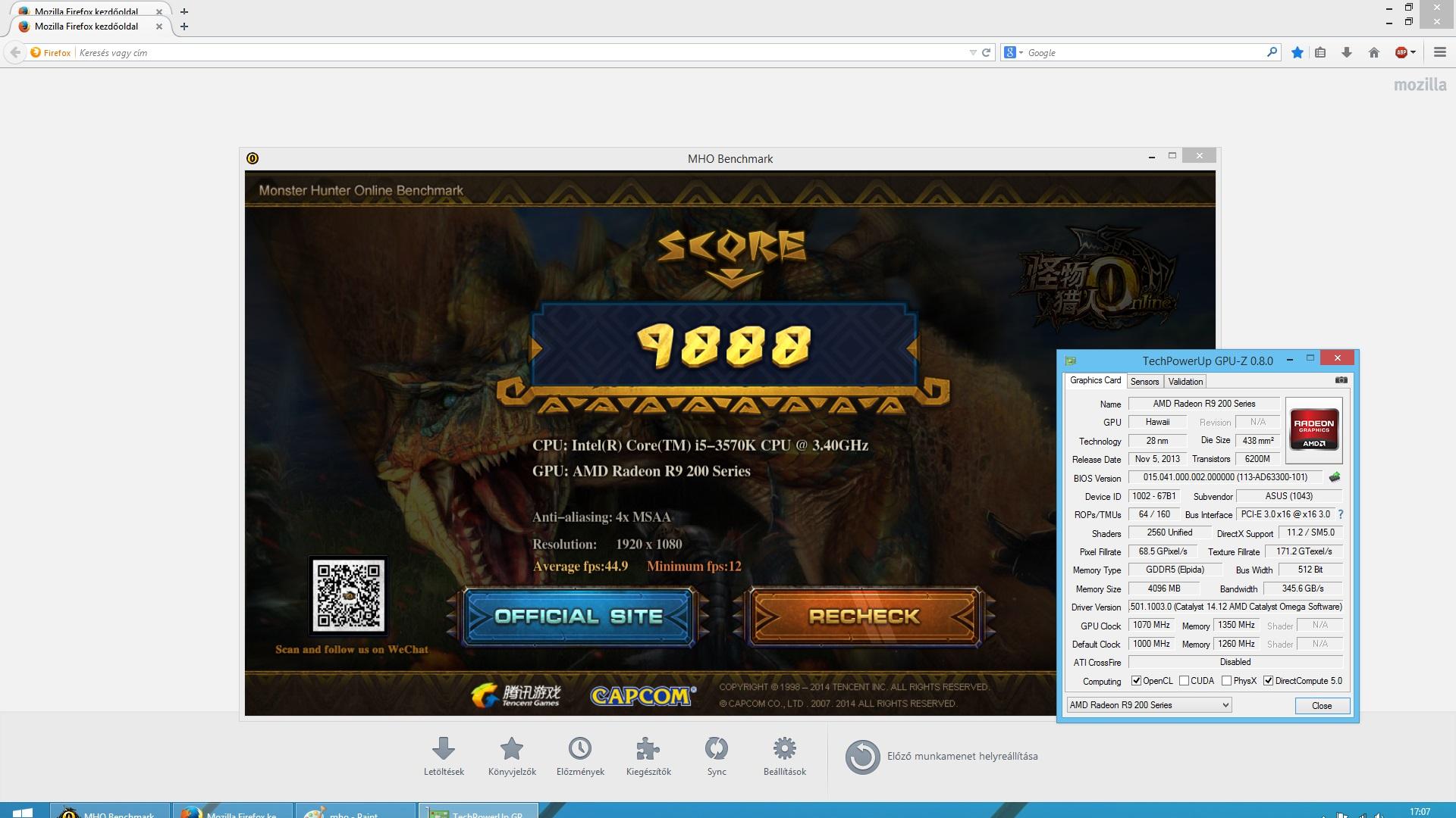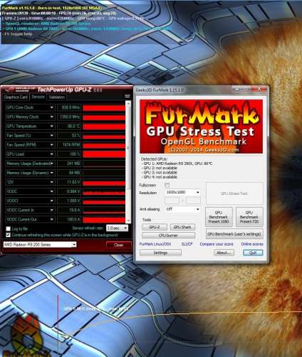 Első tapasztalataim, méréseim (CPU nincs húzva, HD7970 húzva: GPU:1060/Memory:1500Mhz, R290X nincs húzva GPU:1050/Memory:1350Mhz):
