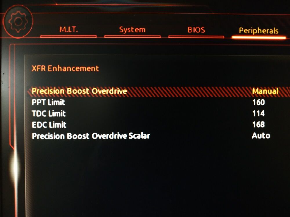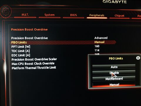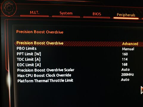 105W TDP (3800X) - 142W, 95A, 140AAz alaplap maximum adatait ugy lehet megtudni amit reportal hogy a PBO menuben nem manualra hanem Motherboardra allitjuk és utana Ryzen master megmutatja mire áll be.