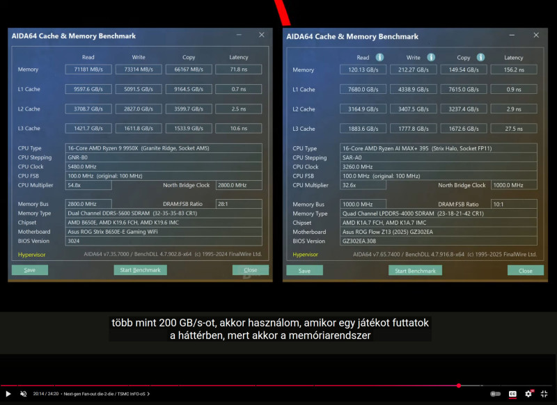- Ugyan itt APU-t hasonlítunk Desktophoz, de úgy tűnik, hogy a Strix Halo szintet lépet, és 2 memória csatorna helyett 4 memória csatornát használ. -