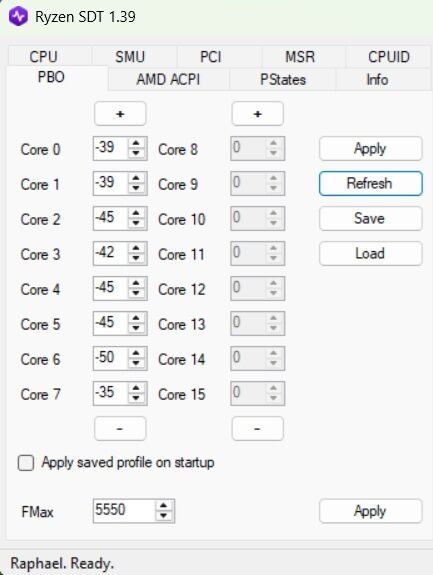 Én meg rájöttem, hogy az auto offset nálam nem "alapfesz/0" hanem úgy néz ki, hogy -35mV. AM4-en 0 volt. Találtam egy videót, ahol Ryzen SDT-vel állítja a srác újraindítás nélkül a CO-t, Statuscore-al rátesz a fizikai magokra terhelést (egyszerre egy mag, a páratlanok) és így kiolvasható hwinfo-ból a magonkénti aktuális feszültség (cpu vddcr_vdd voltage). Majd ezeket harmonizálta, azonos feszültségre hozta, amennyire lehet.