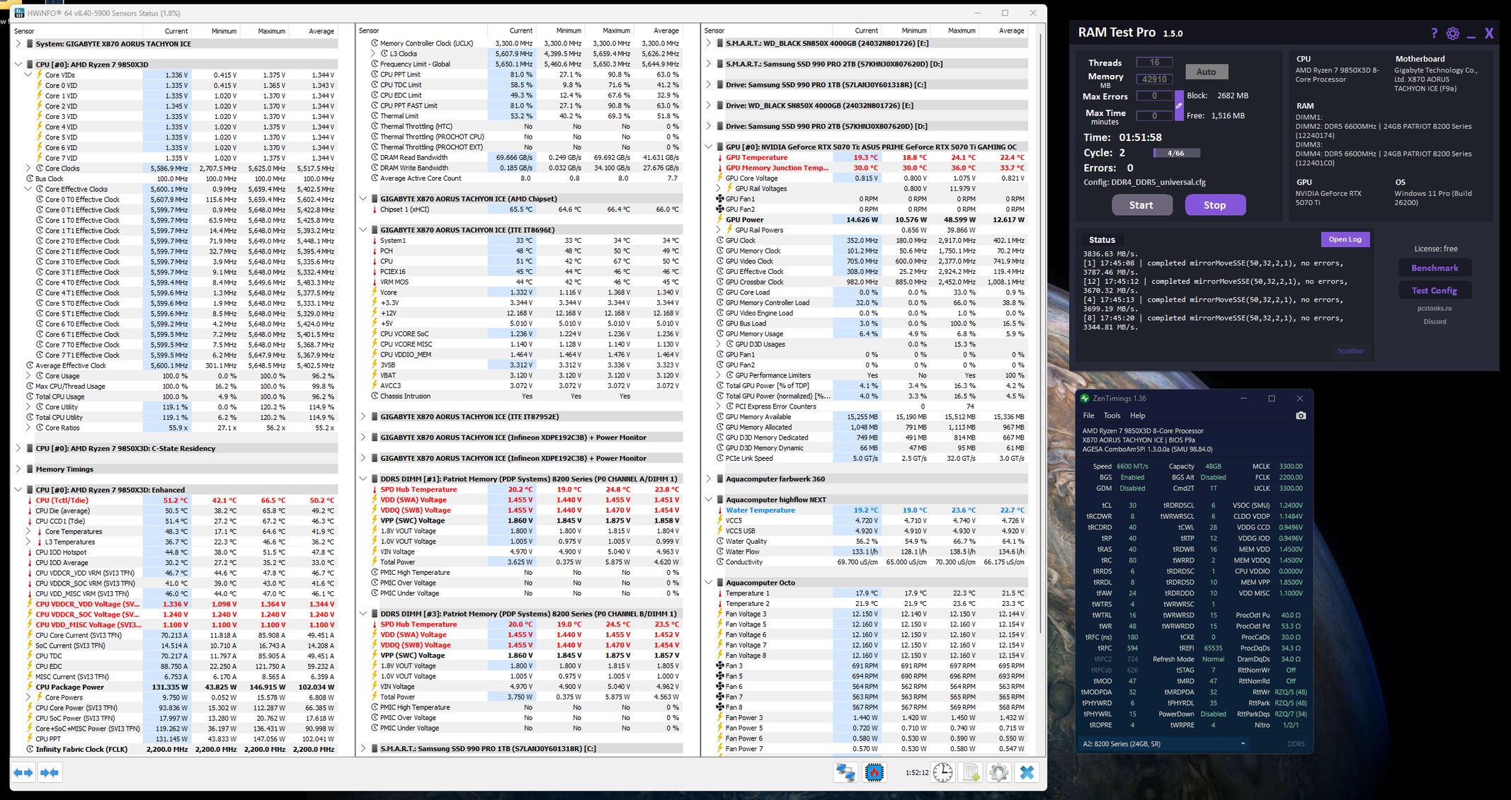 Mindegy, nekem ha magas, ha alacsony, akkor sem megy a 2200. Így viszont a 6600MHz -t sem erőltetem, pedig az menne C28 értelmes feszültséggel. 6400C26 -hoz ellenben piszok sok feszültség kell. Bár OCUK -n arra is azt mondták, hogy 1,62V -től sem lesz baja, sokan majd 2 éve 1,65V -on használják.