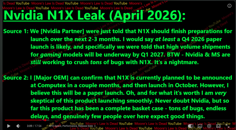 MLID - Nvidia N1X leak. ( video )