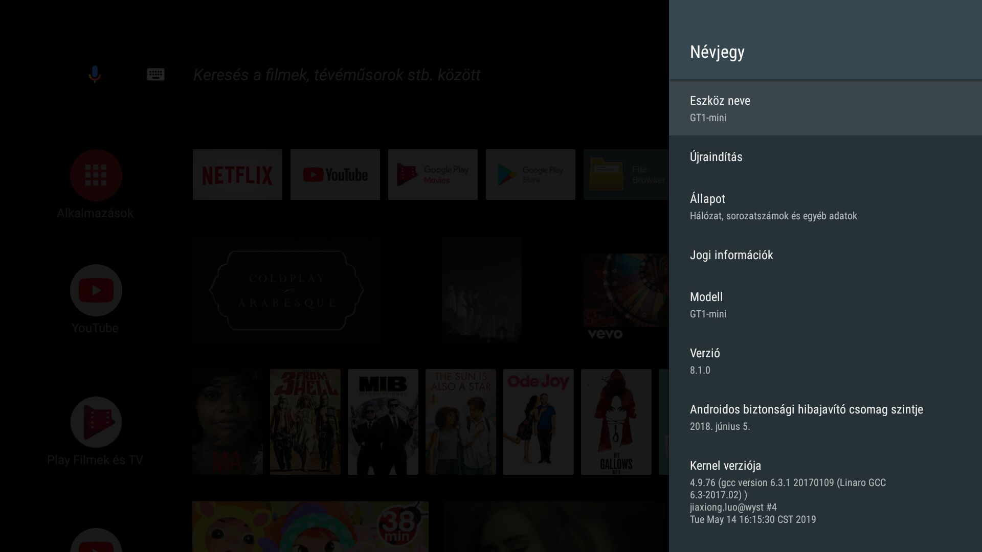 Szia, GT1 mini-re is lehet Android TV OS-et tenni? Ma próbáltam egy linuxot (Armbian5.90) kártyáról, de HW -es videólejátszás támogatás nem igazán volt meg, szaggatott, meg 100%on tolt a procit egy 1080p filmet. Illetve látom a képekből amit feltettél, hogy megy GT1 mini-re is, segítenél honnan tudom leszedni, és feltenni? Ez megy kártyáról is, vagy az USB burning cuccal lehet feltolni a készülékre? Köszönöm!