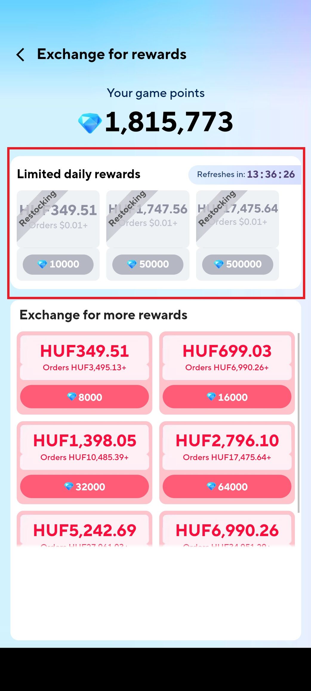 1 éve még simán be lehetett váltani, akkor többször is beváltottam 3-4e ft értékű kreditet vagyis ennyivel olcsóbban tudtam vásárolni. És miven nem volt minimum árhoz kötve így akár vehettem 5e ft-os árut 0 ft-ért. Aztán kb fél éve megváltoztatták a beváltást, kifogytak a kredites beváltási lehetőségek. Reggel 8 kor frissítik akkor van esély beváltani, de általában 1 másodperc alatt elfogy az összes "zöld kupon". Pár hónapja még sikerült beváltanom egy 17 ezer ft-os kreditet azzal jól jártam nagyon, akkor 3 ezer forintért vásároltam kedvezményekkel együtt 25-30e ft-nyi értéket. Azóta viszont esélyem sem volt beváltani a pontjaim mert azonnal kifogynak frissítésnél: -