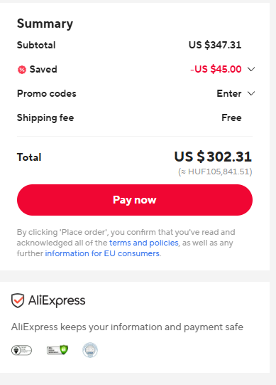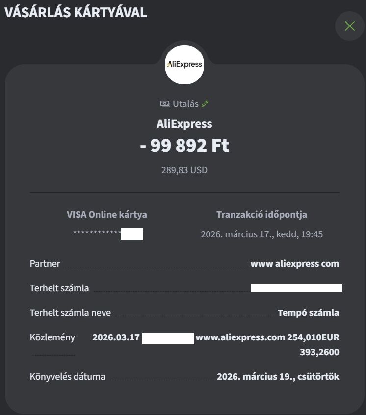 Forint van nálam beállítva és eddig mindig forintban fizettem. Nem tudom most miért dollárban szedte le. Lehet hogy ilyen magas értékű vásárlásnál nincs forint lehetőség, még nem vásároltam ennyiért aliról. -