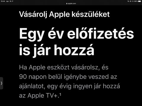 Még nekem is. Hatalmas plusz, hogy alapból konkrétan minden magyar felirattal érkezik. Magyar előzetes, leírás de még a Borító is magyar. Nagyon is foglalkoznak mindenkivel. Ha lejár az ingyenesség én azután is előfizető leszek mert Apple Music régóta elő van fizetve, plusz ha már hozzá teszel egy Cloud csomagot akkor ott vagy, hogy veszel egy Apple One családi csomagot és abba TV+ -tól kezdve minden benne van. Szerintem mindenképpen meg éri a szolgáltatás. Az előzetes pedig mindent elmond, hogy saját gyártású filmek és sorozatok jönnek csak. Egyre több minden jön, lassan be indul és ha már 10 tartalom érkezik egy hónapba bőven elégedett leszek, főleg ha továbbra is ilyen igényes az összes.