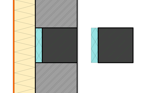 hogyan tudom elérni azt, hogy a jobb oldali profilos gerenda, ha a bekerül a baloldali réteges falba, akkor a két hőszigetelés közötti vonal nem lesz vastag