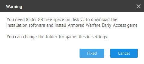 Failed to install Armored Warfare Early Access game. Unable to install "F:\Armored Warfare\Armored Warfare MyCom Beta\gamesdk\textures_hi-part6.pak" file in Armored Warfare Early Access game client. Reinstall the game client?Telepítés közben szépen felhízik 33 GB-ra a mappa, majd a befuccsolás után tök üres lesz - mondjuk lehet, ez normális.