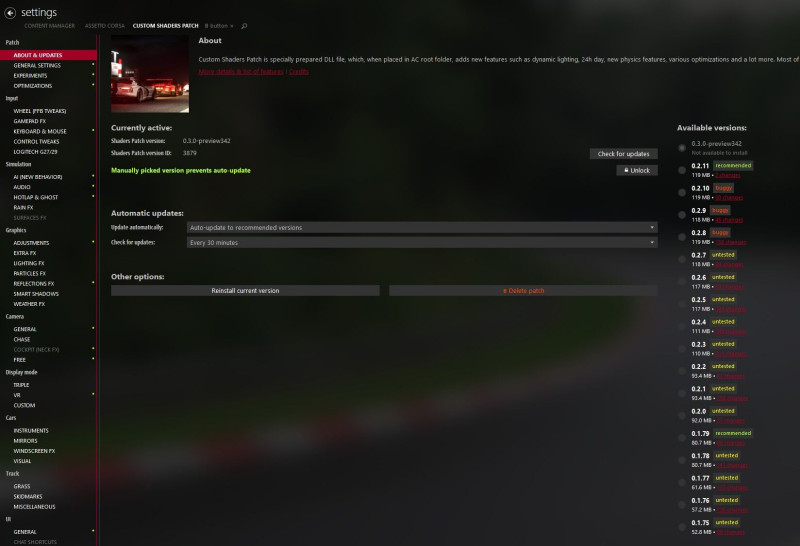 A Custom Shader Patch (CSP) fejlesztője kiadott egy eszközt modderek részére, amivel a tartalmaik (autók, pályák) titkosíthatóak (azóta ez a titkosítás visszafejthető, de ez mindegy is).
