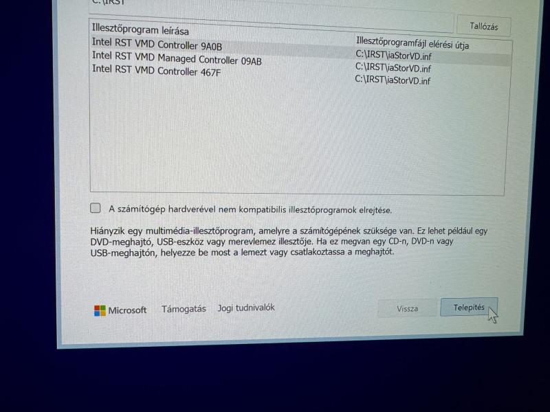 Telepítésnél nem látja az SSD t, töltöttem le hozzá Intel rst file az Asus oldaláról, de nem ismeri fel .