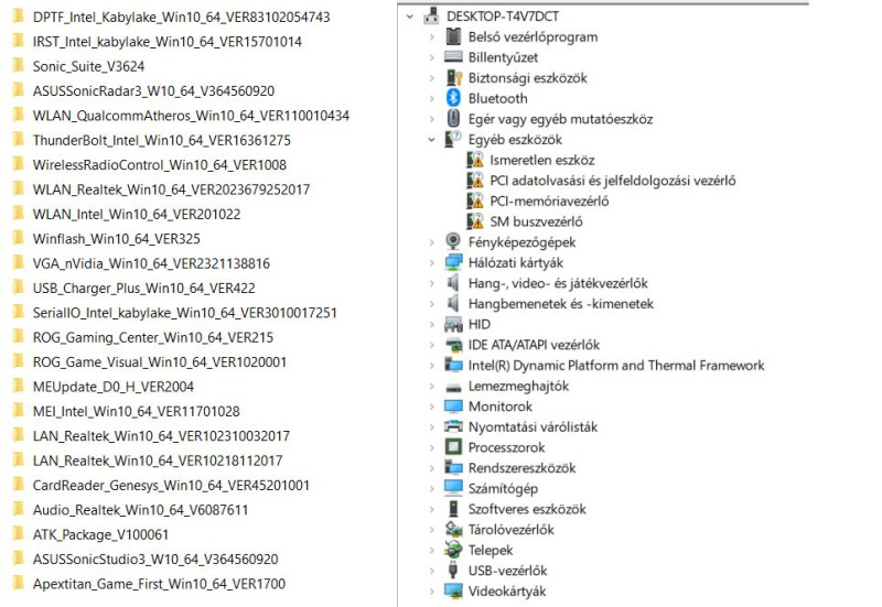 Szűz Windows, mellékelek egy képet mik kerültek fel driverből, és még így is hiányol valamit, de nem tudom mit. Gondolom a hiba itt van valahol