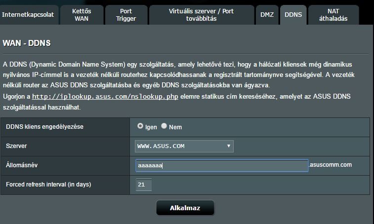 Van egy regisztrált ASUS DDNS tartománynevem (asuscomm.com), azt szeretném továbbra is használni, de csak újat enged létrehozni...