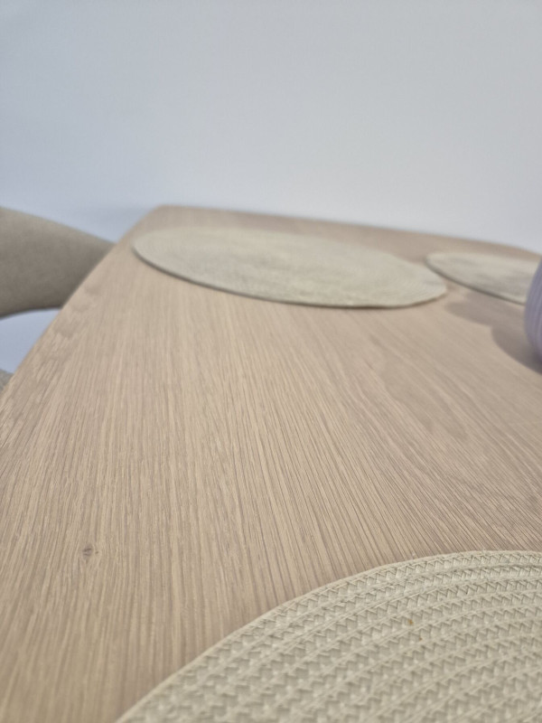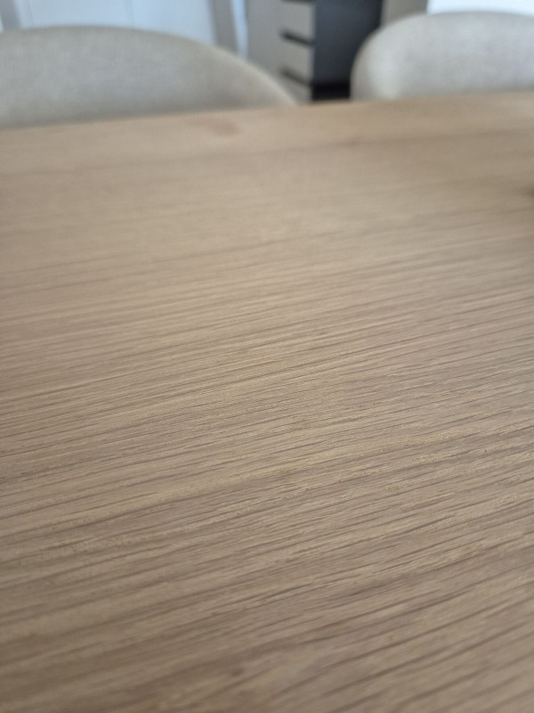 A kép nemigazán adja vissza, de kezeletlen "nyers" az étkezőasztalunk felülete ezért ha csak egy pohár hideg vizet teszek rá a pohár aljánál körben szépen beszívódik a fába a nedvesség. Kajamaradéknál szintén, zsírt nagyon nehéz róla törölni.