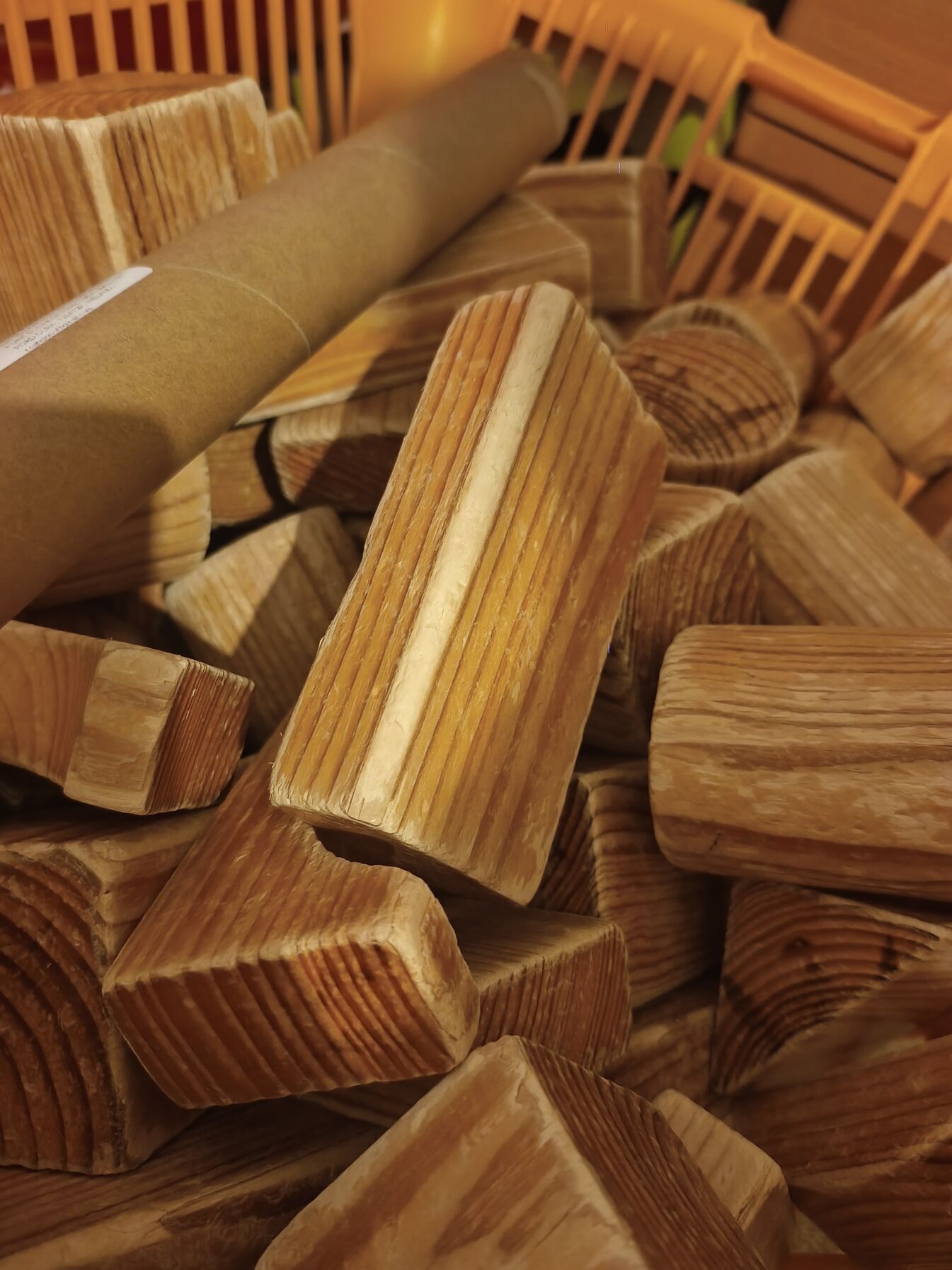 Parom hazahozott ovibol egy csomo fakockat, h majd jol felujitja. Aztan rajott, h nem lesz ez olyan egyszeru, mert ugyan le tudja rezgocsiszoloval szedni a megmaradt lakkot, de az is szivas.