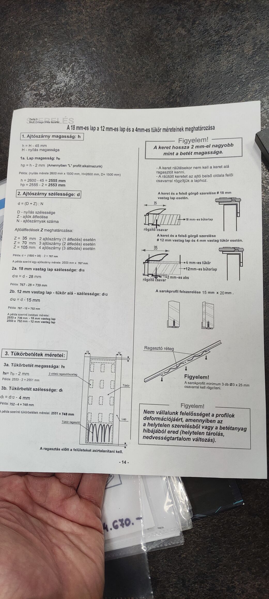 Mi Sevroll-t használunk, türkös esetben Alpha II fogantyúval, oda nem kell 2mm-es abs sem, simán 12-es lap + 4es tükörrel jó vagy. Nekem sziló még nem marta meg, de csináltam már 2 oldalas ragasztószalaggal is, az is erősen tart. Ez a profil megszorítja külön a lapot és mellette tartja a tükröt is.