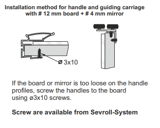 Hátulról ugye kb 4-4/5-5 csavar a fogantyúba és a többi...Meghajlott ajtót én még csak olyat láttam,amikor a két előreszerelt fogóprofil közé ragasztották az üveget,meg eleve 12mm vastag az ellenhúzó vasalat,szóval tükrös ajtónál elvileg használhatatlan.