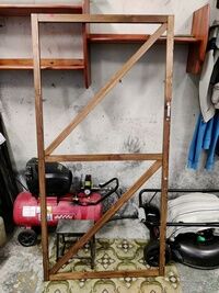 Igaz, csak valamiért ott maradt, mert dizájnosabbnak gondoltam úgy. De egyébként ez is működne, hogy ott maradna középen a vízszintes és két átlós léc is lenne, jól gondolom? Csak nem az ábra szerinti elrendezésben, mert rájöttem arra, hogy ha bal oldalon lesz a zsanér, akkor a felső léc teljesen hülyeség, mert úgy nincsen támasztó szerepe.