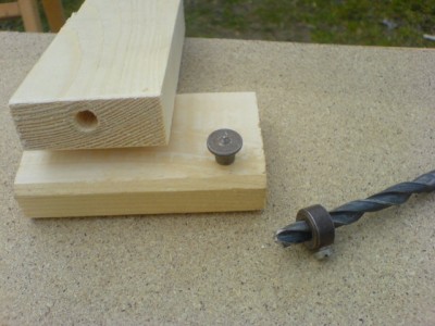 Figyelj: Kifúrod az egyok darabon az összes csapot (SZEMRE!). A mélységét viszont NEM szemre, hanem a fúrószárra esztergáltatsz egy hernyócsavarral rögzíthető határológyűrűt. (lehet, hogy már van is ilyened). Illetve hát az egyik fadarabon lehet szemre a mélység a fatipli hossza osztva kettővel, plusz hangyapuca. Egy marék tiplit átfúrsz pont középen, és átütsz rajta egy szeget úgy, hogy a szegből épp a hegye, plusz fél mm álljon ki. A szeg hegyét jó tompára reszeled. Most bedugdosod ezeket a tipliket a furatokba, odailleszted azt az elemet (pontosan! Ha nincs még gyakorlatod, akkor készítel határolóleceket, amihez odaszoríthatod az illesztenő darabjaidat), amivel összehozni akarod, és (hokktiszta) gumikalapáccsal finoman odakótyonfityikélsz minden tipli fölé, hogy a szegek pontozzák be a furatok helyét. Így már tudod hova pászítani a fafúró csúcsát, és még ha olyan is a tiplisorod, mint a fiú szürkemarhapisilés, a furatok párjai átmásolódnak pontosan. Most arra érdemes még nagyon figyelned, hogy a tipli hosszánál a furatok fél+fél, azaz egy milliméterrel mélyebbek legyenek, hogy legyen hely az ragasztónak, és semmiképp ne legyen mélyebb, mert akkor csak a tipli legvége ér bele az enyvbe, meg kisebb se, mert akkor a szedheted szét ragaszás közben furatmélyítés végett, ami igen macerás dolog. Rovátkolt tiplit használj! Ha nem olyat vettél, akkor egy kombináltfogó recéjével szorítgasd meg, így kész a home made enyvtáska.