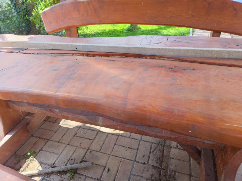 Én nem foglalkoznék a síkba gyalulással, helyszinen felszerelnék rá két vezetőt és felsőmaróval kalodába fogva síkba marnám. De egy ilyen rusztikus padnak a flex és bármilyen csiszolókorong sem állna rosszul.