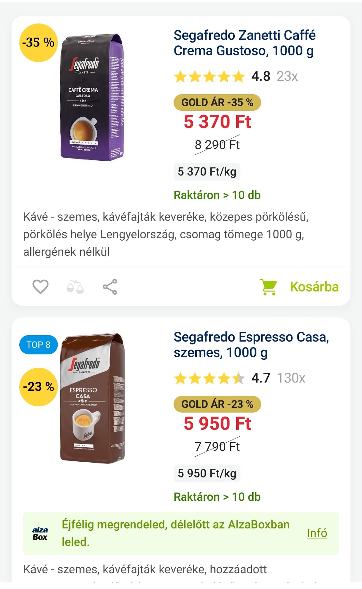 Most vettem észre, hogy alzánál egész jó p2p árak vannak néhány kávénál. Ezekről mi a vélemény: