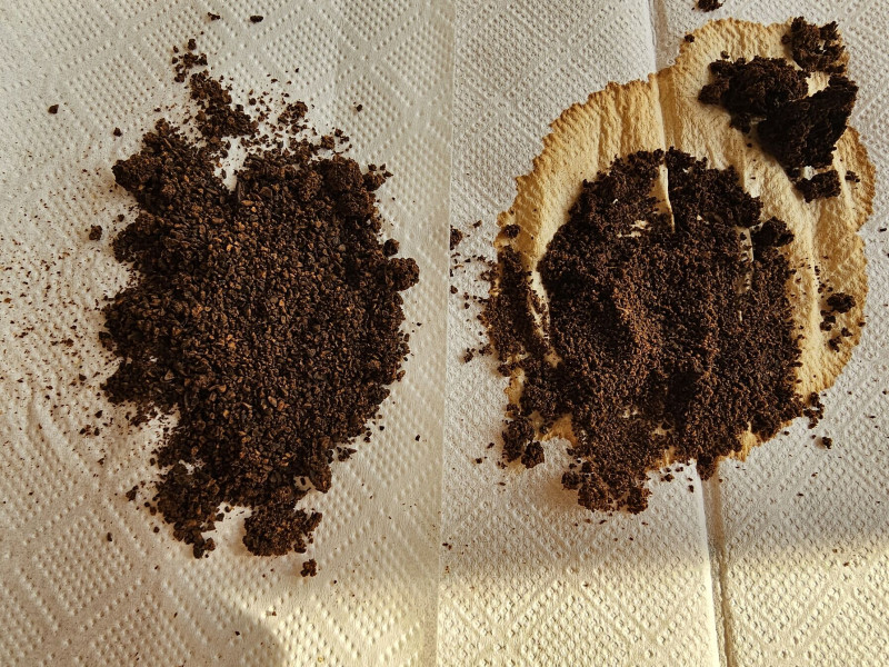 Feleségem ha orchideát öntöz, csak felönti az átlátszó műanyag kaspókat ês pár óra múlva leönti. Innen jött az ötlet, hogy ha cold brewhoz úgyis olyan darabokra kell őrölni a kávét mint a fenyőkéreg darabok az orchideák alatt, enyhe túlzással, akkor én is felöntöm egy nagy french pressben a 30 gramm őrleményt 6 deci hideg vízzel. Láttam hogy matt, zavaros a víz a sok fine miatt ahogy feloldódott, leöntöttem. Aztán megint. Gyakorlatilag háromszor átmostam a durva őrleményt, kihasználva a french press fémhálóját, és így már elég tiszta vízben úszkálnak a kis kávémorzsák.