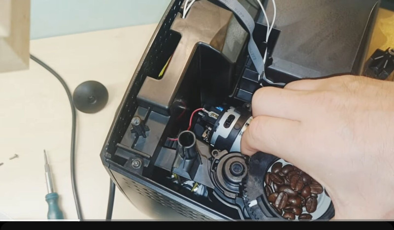 Ha kirúgja a zacctartályt, biztos hogy megáll a főzés, mert van egy érzékelő, ami bont olyankor. Hogy mi nyomja ki a tartályt a főzőegységen, lehet hogy látszik ha ilyenkor kinyitod az ajtót.