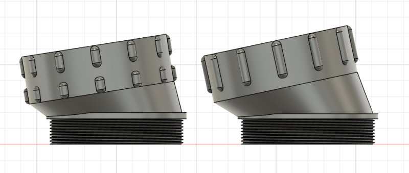 Ezen a TILT/SHIFT adapteren csak M42x1 menet van, de bonyolult bayonett csatlakozás sem jelent gondot 3D nyomtatással. Ennél a munkadarabnál nincs falvastagsági kritérium, ezért tartósak és olcsók.