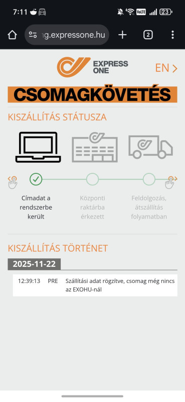Szoval dec 6 átata a paketa az one express nak de ö még nem reagált ez gyanus mert elég gyors ilyen szempontbol a paketa egyik legnagyobb szélhámos cég talán amit találkoztam idáig de temus jotétjeiről miket müvel! one express még mindig egy olyan állapot van mind nálad a képen!