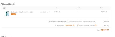 Több oka is lehet, ha azonos a termék -nincs más opció szerint választva- akkor lehet hogy köbvetkező termék szállítási díja az csökken, de ezt a vásárlási összesítő oldalon látod majd, nem a kosárban.A példámban a OnePlus 8 esetén ha kettőt fizetek akkor az össz szállítási költség a 5.98 $-ról 4,13 $-ra csökken. Kevesebb lesz. 2,065 egy darabra