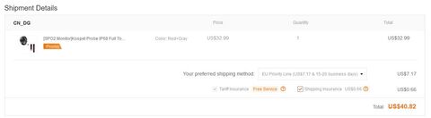 Fizettem shipping insurance-t + van rajta "Tariff Insurance" is.