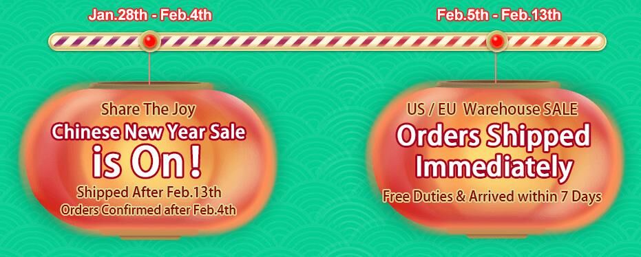 "But we are sorry that we can't ship any order now. Because we are in holidays for Chinese New Year from 26th Jan to 11th Feb."