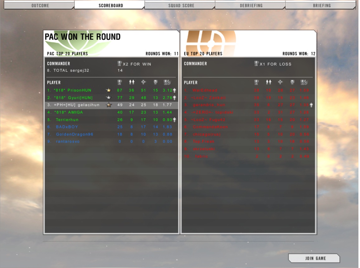Csapatban pedig csináltunk neked helyet, mert mi is szeretjük, ha egy Squadban vannak a magyarok. Jó lett a Screenshot is: látni rajt a kollaboráns Commander nevét (Terrierhun), aki rendszeresen küldte a nyakunkba az áldást. Persze azért mi sem hagytuk szó nélkül a FightingCommander akciókat és rendszeresen megtoroltuk a szemétkedéseit