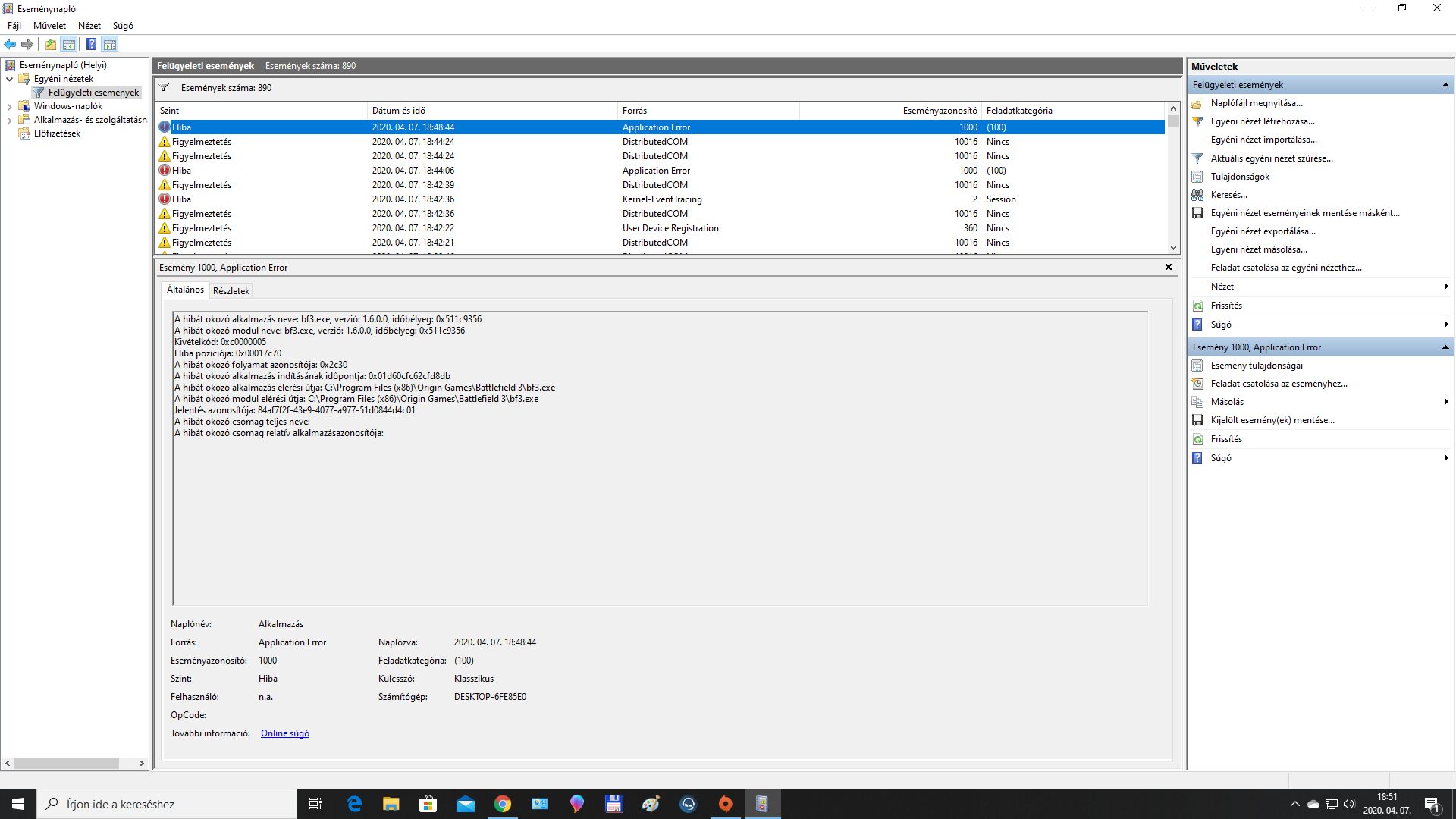 A hibát okozó alkalmazás elérési útja: H:\Origin\Battlefield 3\bf3.exe