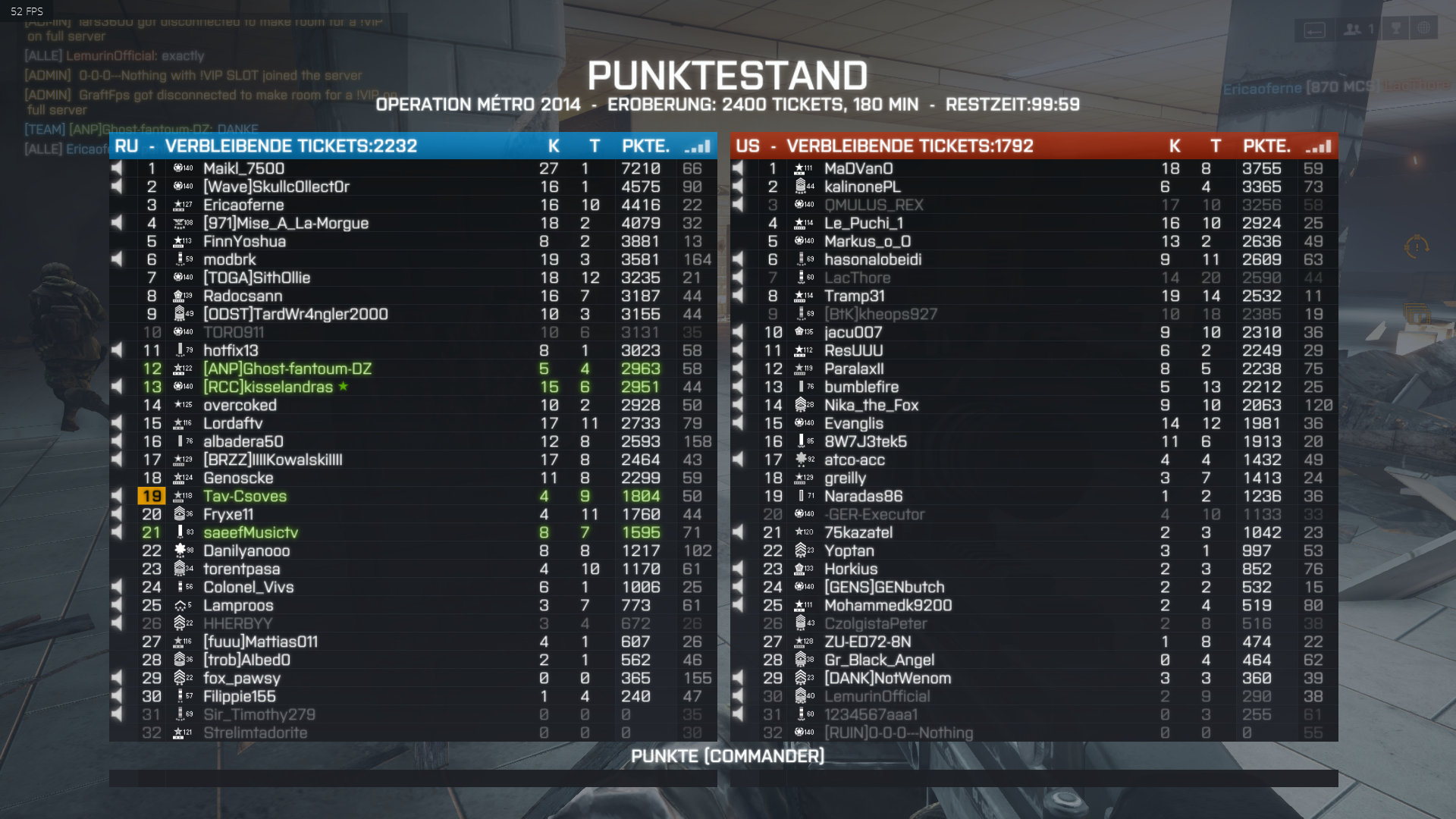 Mi történt a játékkal? Felmentem egy 42/64-es szerverre ahol van 35-ös pingem, de ingame kint van a packet loss, a high ping és néha még a kevés fps jelző is (140 fps-em van, lol). Plusz vagyunk fent 4-en, server browserben pedig 46/64 lett.