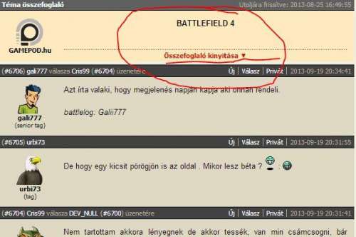OFF beszélgetős topic nyílt, a nem Battlefield 4 témákról kérjük, hogy ott beszélgessetek, ez a téma maradjon meg szakmainak! Cheatek a topikban szintén tiltottak!