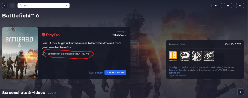 Az létezik, hogy EA appban nem lehet megvenni a játékot, csak PlayPro előfizetésként? Elnéztem valamit?