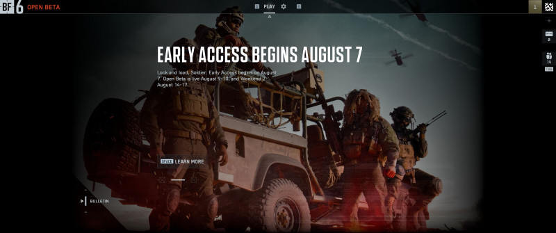 az Early Access Beta augusztus 7‑én indul azok számára, akik kaptak kódot vagy részt vettek a Battlefield Labs-ben. A pontos időpont: