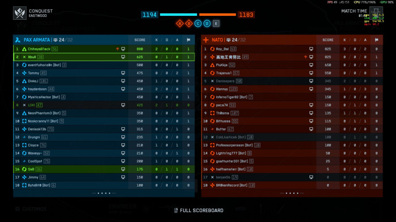 Személyeskedést kerüljük, nem tűrjük itt. A téma a játékról szól és nem egymásról, ez egy barátságos BF közösségépítő téma, maradjon is így.